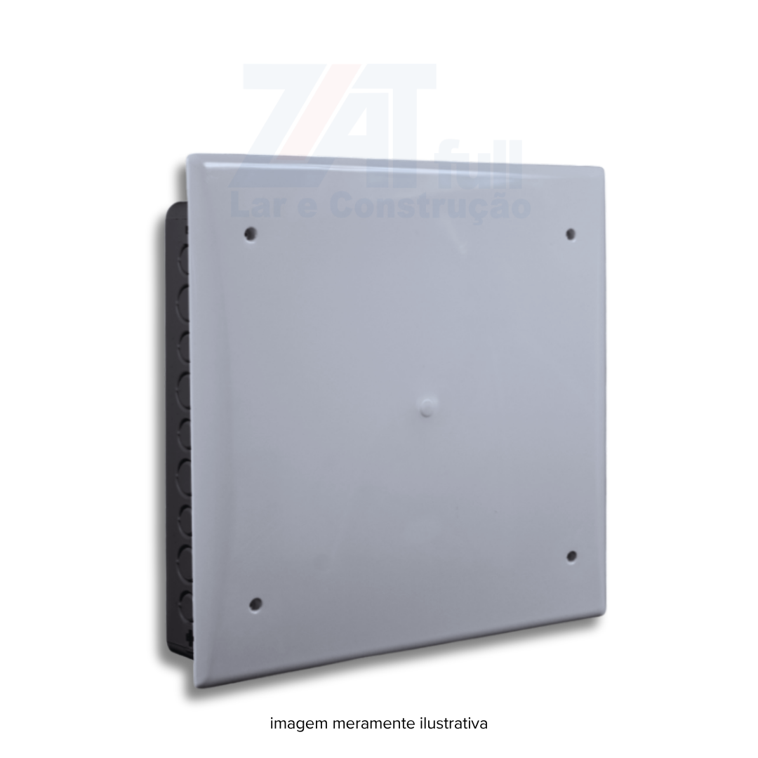 Largura: 41 cm Altura: 41 cm Profundidade: 8 cm Tipo de Instalação: Embutir Material:PS e ABS (plásticos de alta resistência) Cor: Branca Fixação: Parafusos para fixação direta na parede ou clipes para gesso acartonado e drywall Tampa: Removível, facilitando inspeções e manutenções Entradas para tubulação: Aberturas pré-marcadas que permitem escolher o local da entrada da tubulaçã Aplicação: Indicada para instalações elétricas aparentes em ambientes internos, como salas, cozinhas, lavanderias e garagens Benefícios