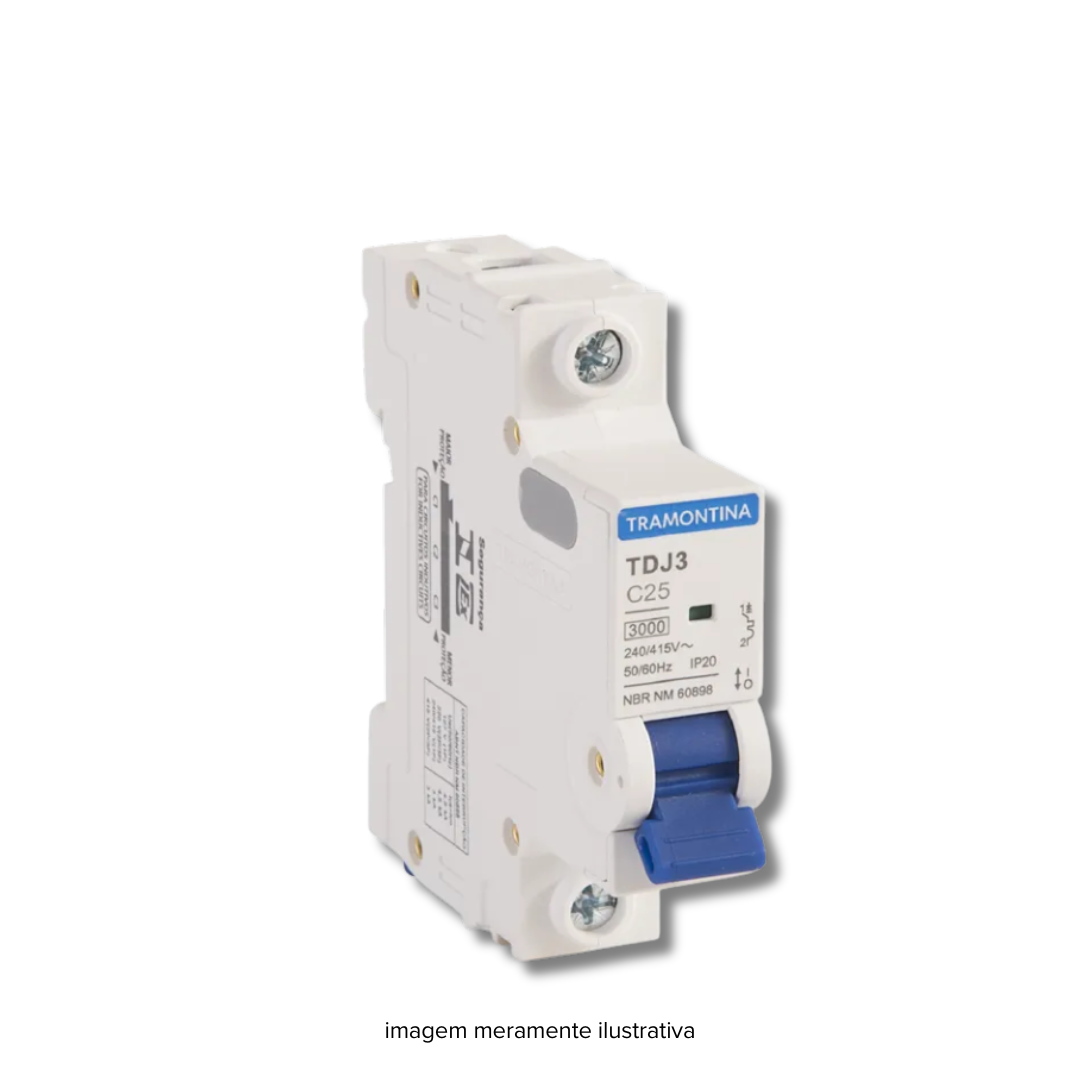 Leve alta qualidade para seus projetos elétricos, com o Disjuntor TR3KA 1P 25A Curva C Tramontina. Desenvolvido para garantir a segurança da instalação, ele preserva a rede elétrica e seus equipamentos em caso de sobrecarga ou curto-circuito. Ele é instalado no quadro de distribuição e dimensionado de acordo com a potência dos equipamentos, números de tomadas e quantidade de lâmpadas. Sua montagem é individual, sem a necessidade de desmontar o barramento, o que otimiza o tempo de instalação.