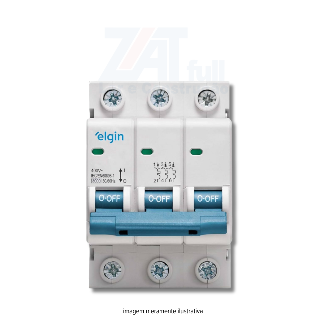 Os mini disjuntores Elgin são equipamentos destinados à proteção de instalações de baixa tensão contra curto-circuitos e sobrecargas. Atendem a equipamentos com necessidades de 6A a 70A e 80A a 125A obedecendo a curva "C". Sua construção prevê a possibilidade do travamento da manopla, em comprometimento da proteção dos circuitos. Marca: Elgin Corrente Nominal: 50A Número de Polos: Tripolar (3 Polos) Protege três fases. Indicado para sistemas trifásicos. Curva de Disparo: Tipo C Normas: NBR NM 60898 Tensão de operação(Ue): 1P 240V Tensão de isolamento nominal(UI): 500V Tensão de Ruptura: 3kA Frequência Nominal(CA): 50/60Hz Classe de energia: 3 Temperatura de funcionamento: -25°C a 70°C Grau de Proteção: IP20 Tipo de Instalação: DIN 35mm Tipo de disparo: Térmico e magnético tipo fixo Garantia: 5 anos (PELO FABRICANTE)